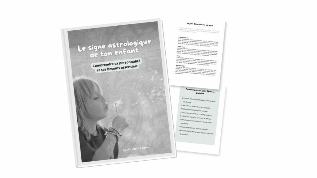 Un guide pratique qui détaille les 12 signes solaires chez l’enfant : leurs besoins, leurs défis, leurs talents naturels et quelques conseils pour les accompagner au quotidien. Chaque signe est expliqué avec bienveillance et pragmatisme.